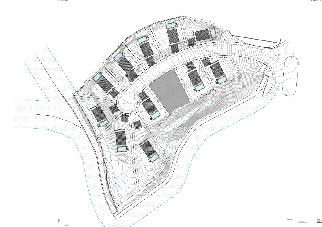 Each plot has an area between 450m2 and 835m2 permitting construction of individual houses with 2 bedrooms, and two interior parking places, two floors, and footprint of 125m2 and max construction of 225m2.