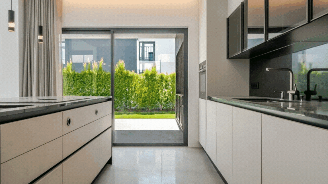 The designer kitchen is fully fitted and built with everyday use in mind, including good storage, quality appliances, and a practical layout. Next to the kitchen, the outdoor BBQ area is perfect for gatherings with friends and family.